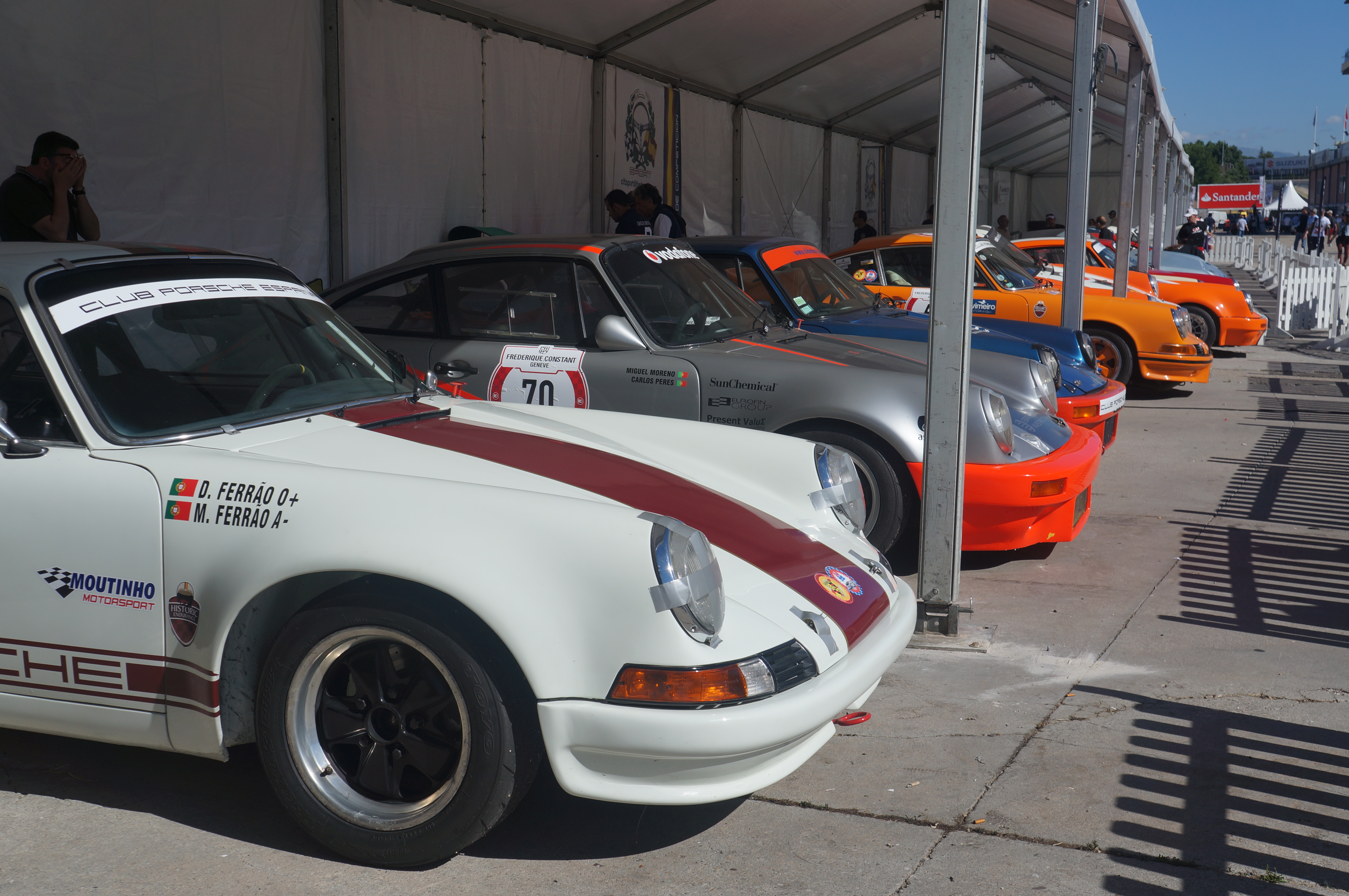 Entre el ir y venir de Porsches , Lotus , 2002 tii , Alfas , etc.. Alberto se ha perdido , entonces lo veo aparecer con dos guapísimas señoritas vestidas como camareras de los años 60 . Las sorpresas aparecían por doquier , unos niños jugando a la comba, Travolta y Olivia , un rockero loco , Una simpática pareja de guardias civiles , un no parar .