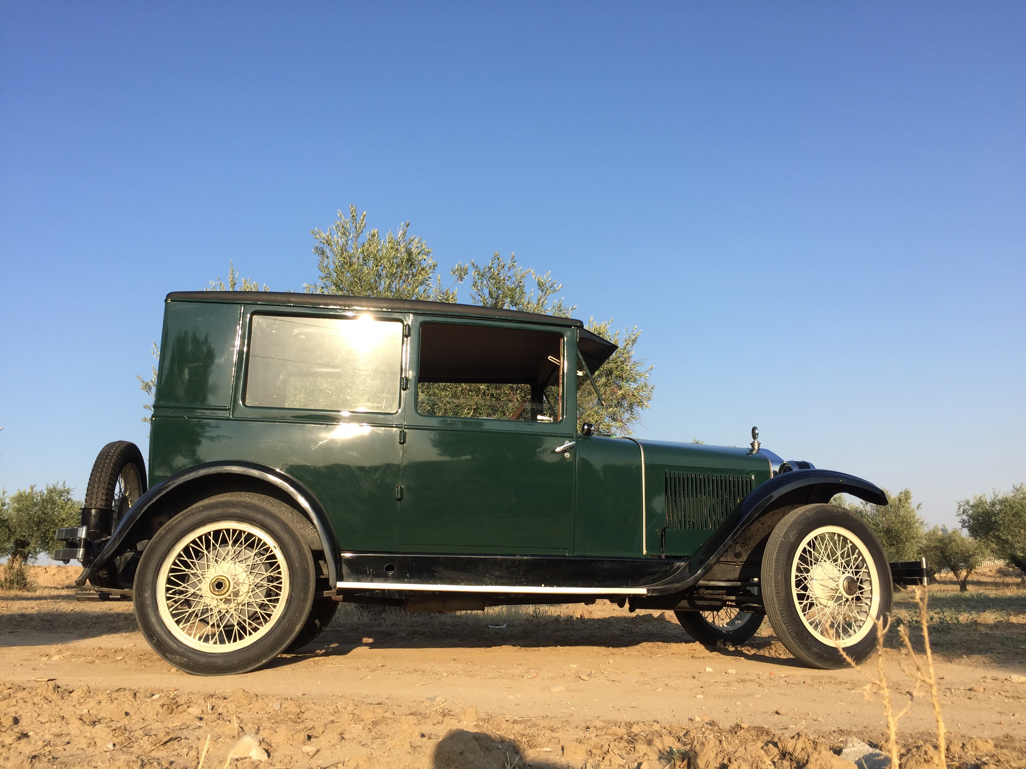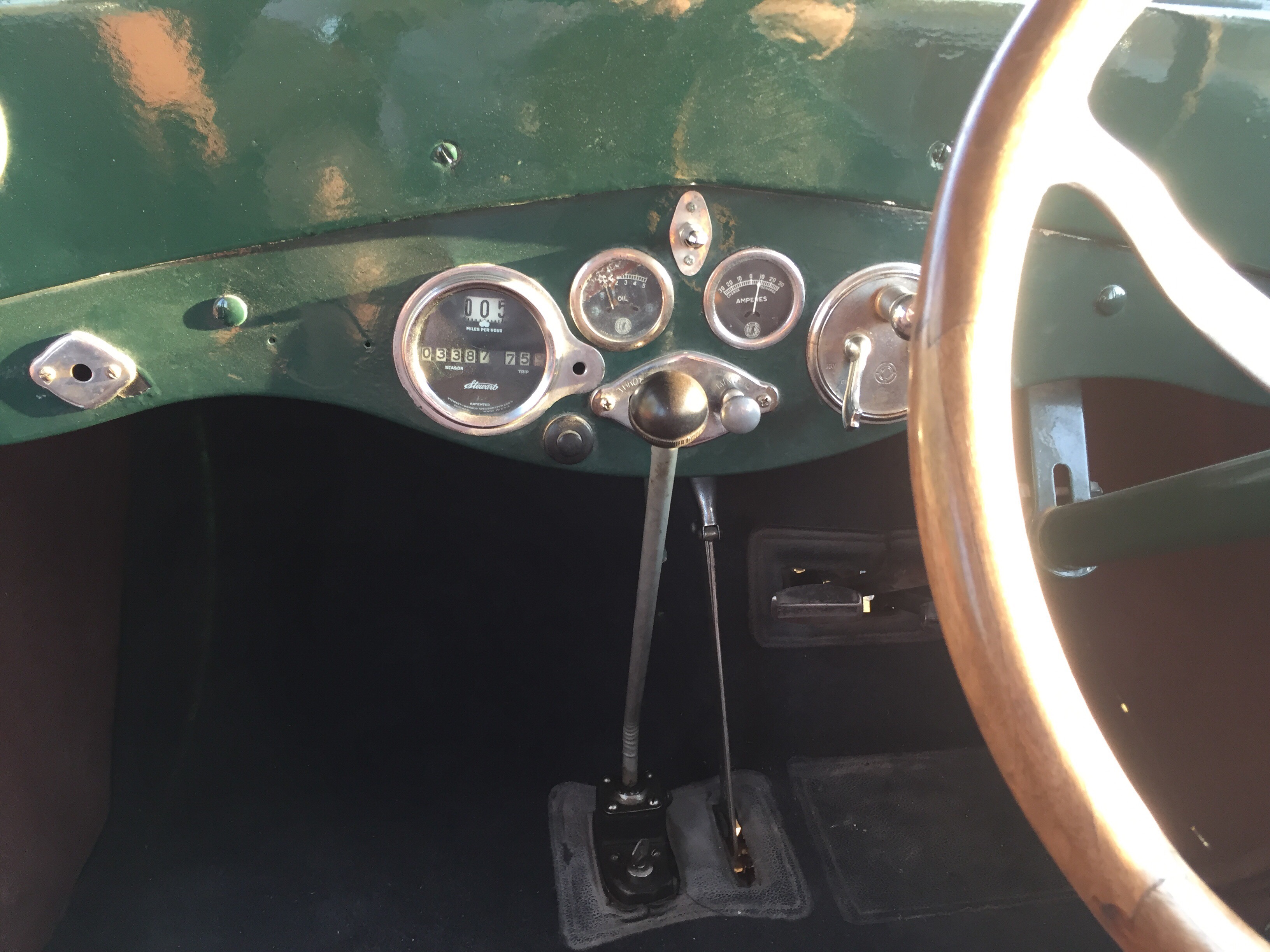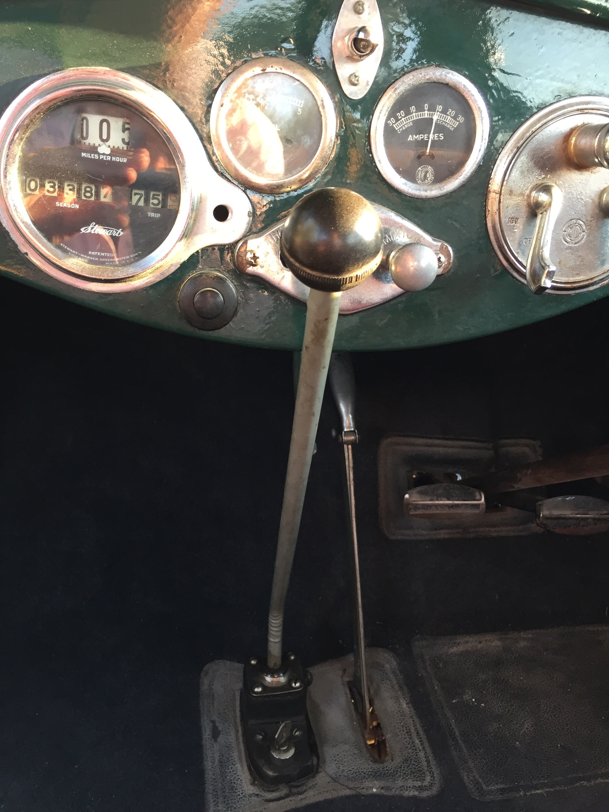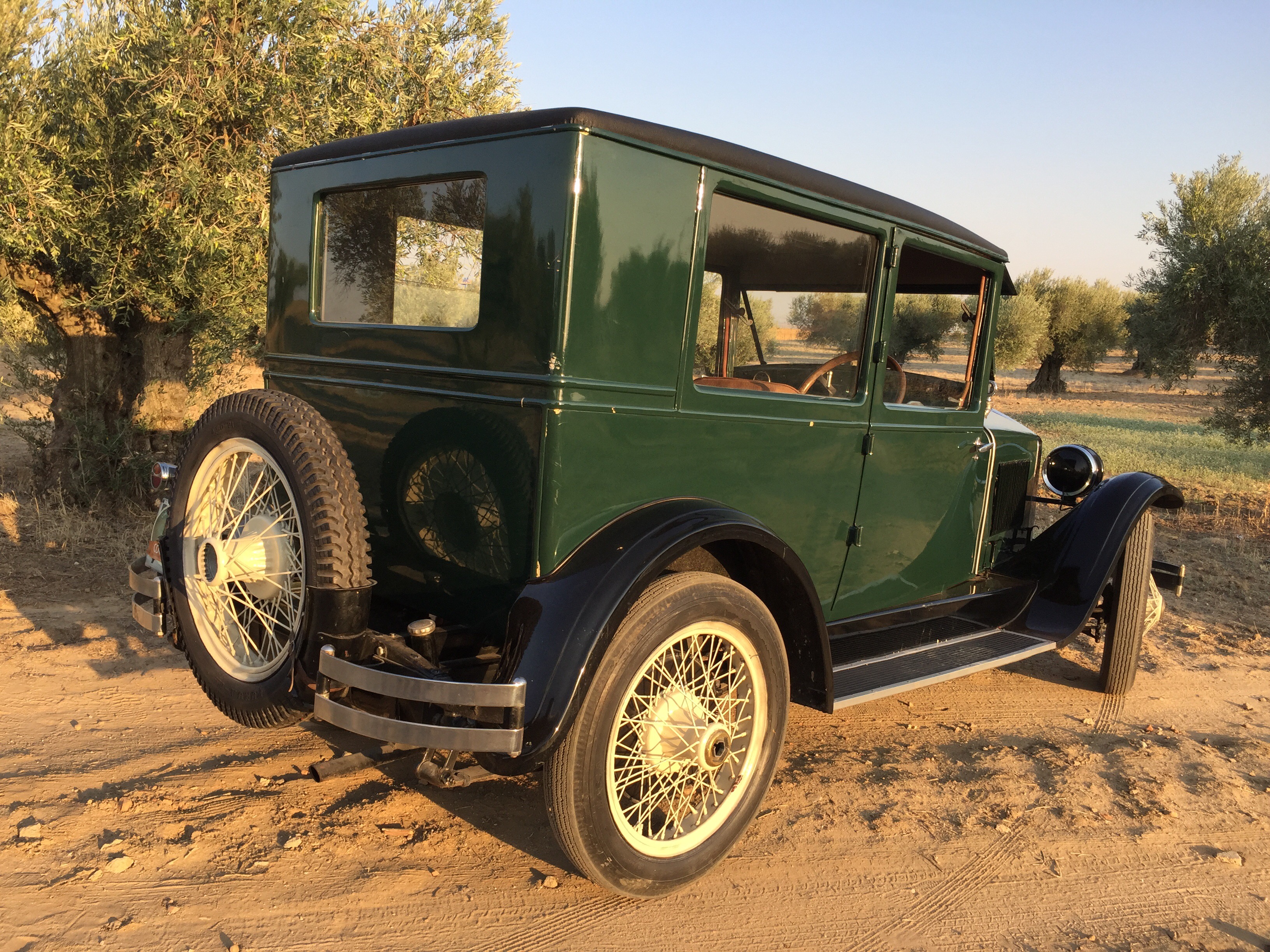 Un volante grande , un interior lleno de curiosidades por la simpleza de las mismas como los alza cristales tipo tren o un cuenta kilómetros con mucha personalidad .Piso de madera , ruedas de radios, un termómetro que marca la temperatura del motor presidiendo el inmenso capot como si del escudo se tratase , asientos mullidos y cómodos y … la bocina con ese tipo de sonido que imaginarías para un coche de esta época ¡ que sensación tan mágica !.