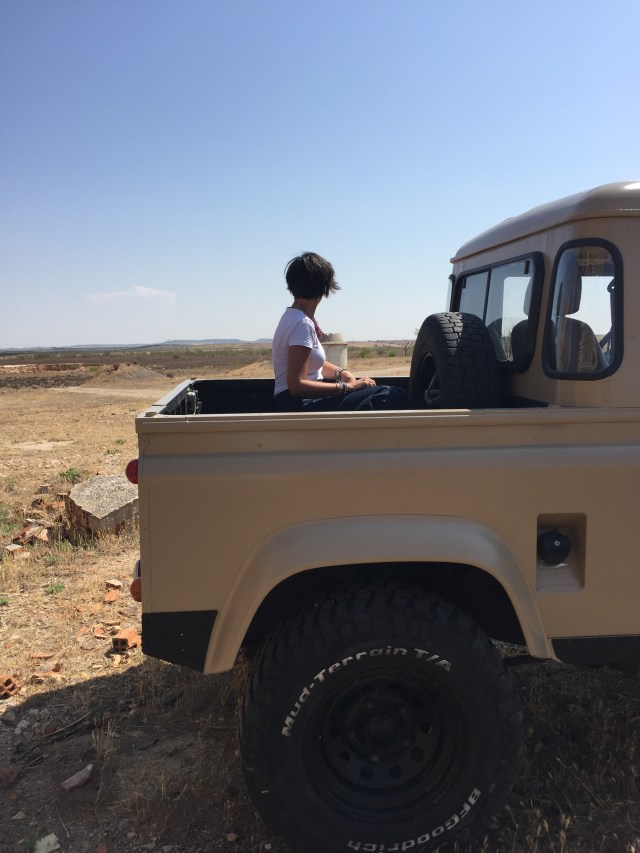 Ciertas dudas en cómo empezar el relato , aunque viendo a Marta sentada en la caja el land rover , rápidamente se me ocurrió el » yo tenía una granja en África ….» aunque la realidad es que lejos de las fieras del continente africano lo más parecido que sentimos en la meseta castellana es un Calor insoportable , sólo saciado con el agua embotellada que bien hicimos en comprar .