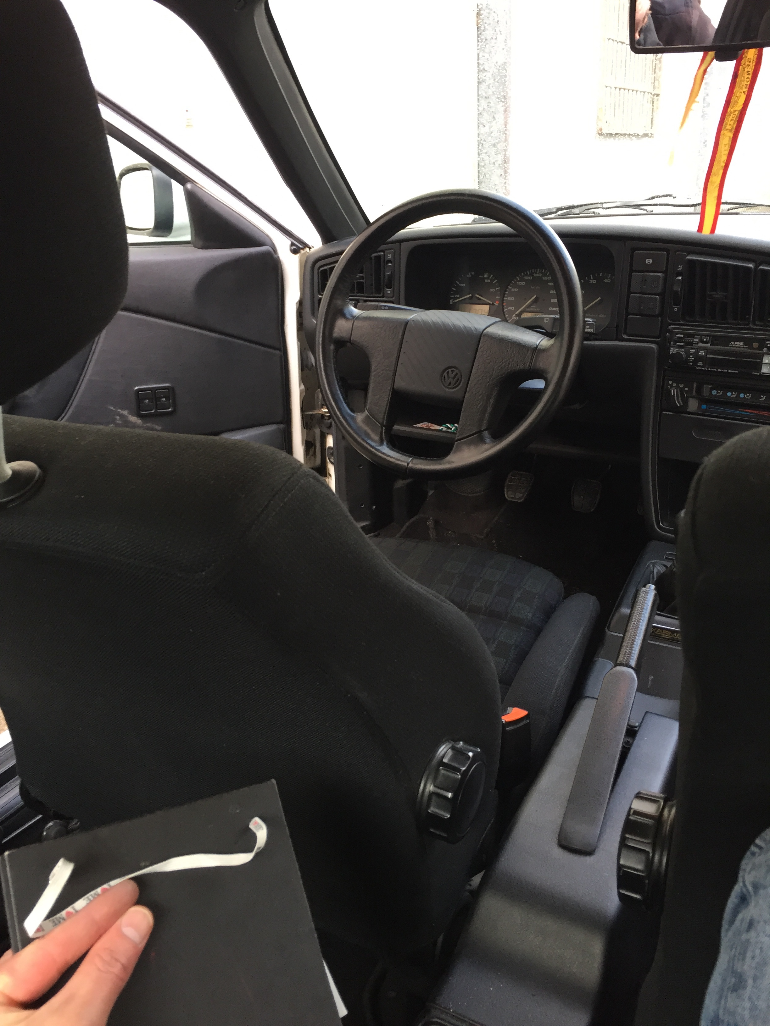 Unas plazas traseras que a día de hoy y con algo más de 40 años y metro ochenta y tres , todavía resultan cómodas , eso si durante la prueba me tocó inclinarme hacia adelante un poco porque de primeras , mi reluciente calva se clavaba en el techo y un motor como un misil , 160 cv del 1.8 sobrealimentado con el compresor G60 , confirmaba lo que más tarde constatamos Hugo y yo : que la diversión estaba asegurada .