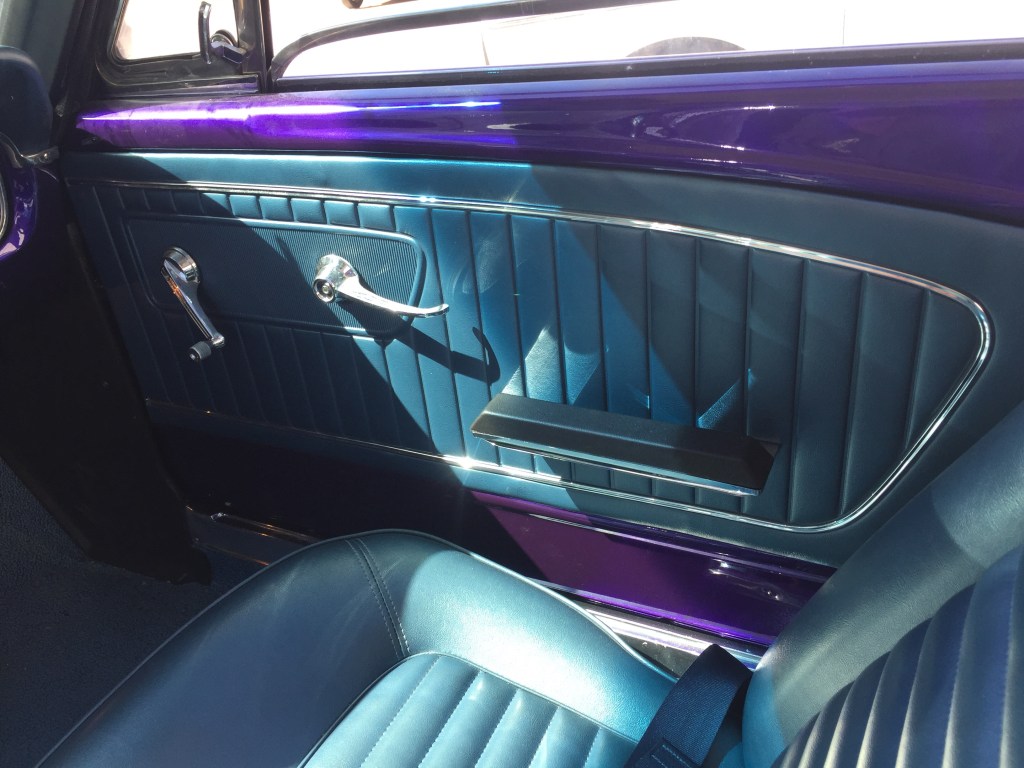 Nuestra unidad , a la que le quedan pequeños detalles para ser entregada , está pintada con el color que decidió su dueño , no original en el Pantone del modelo en Lis sesenta , pues bien , después de ver las distintas combinaciones , se decidió una gama de azules para el interior , todo es nuevo y original : moqueta , alfombrillas , fundas de Los asientos … sorprendente .