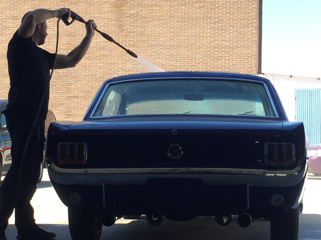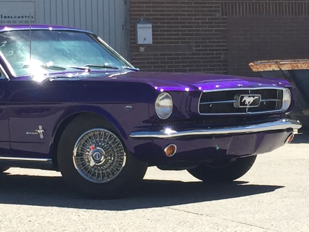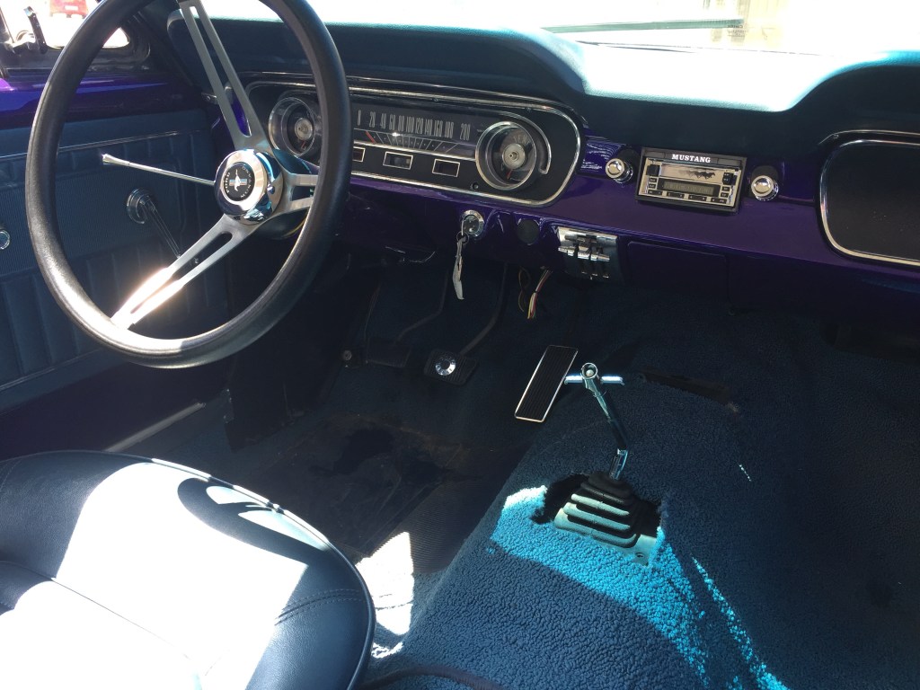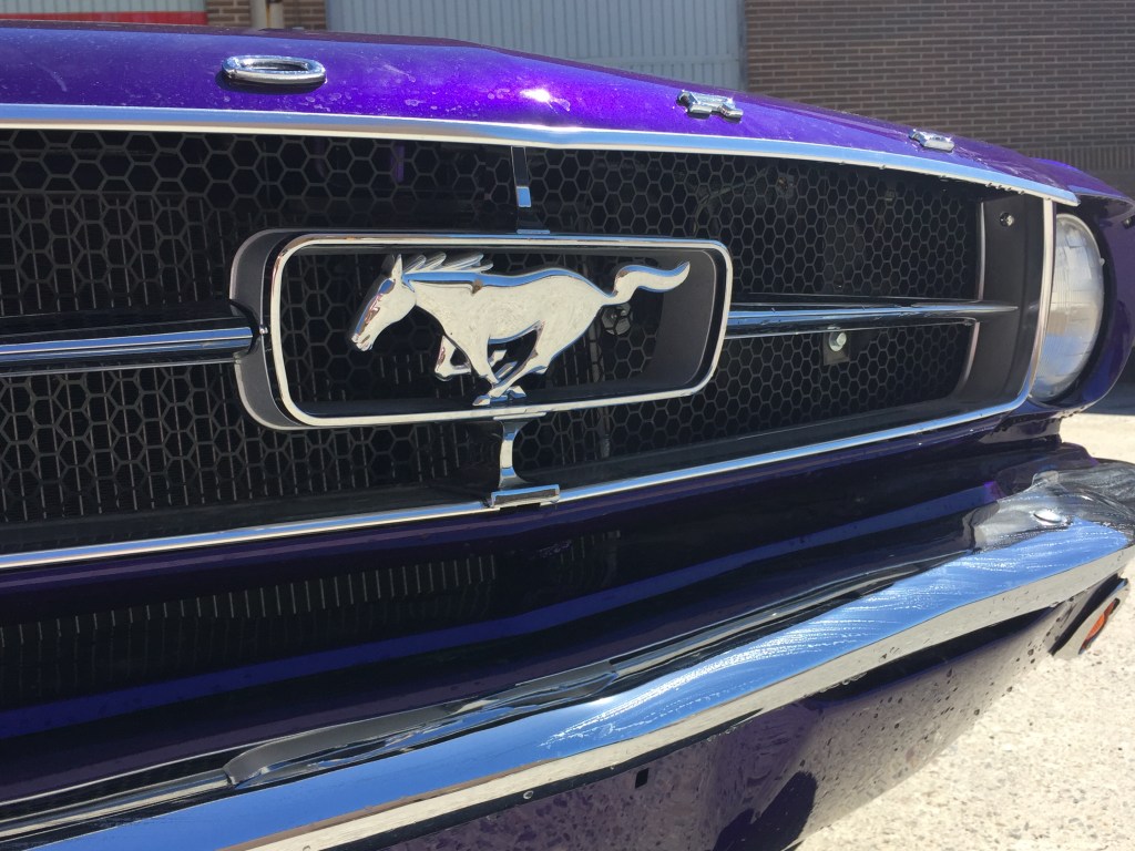 Hablando con el equipo de Motorkrash , que son los que han hecho posible la restauración del coche , me comentaban que aunque parezca sorprendente para un coche de 1965 , la restauración está hecha con piezas originales nuevas llegadas desde el otro lado del charco , parece una paradoja pero es cierta , es más fácil restaurar con piezas nuevas de origen un Mustang del 65 , que un SEAT 600 , el coste es otra cosa .