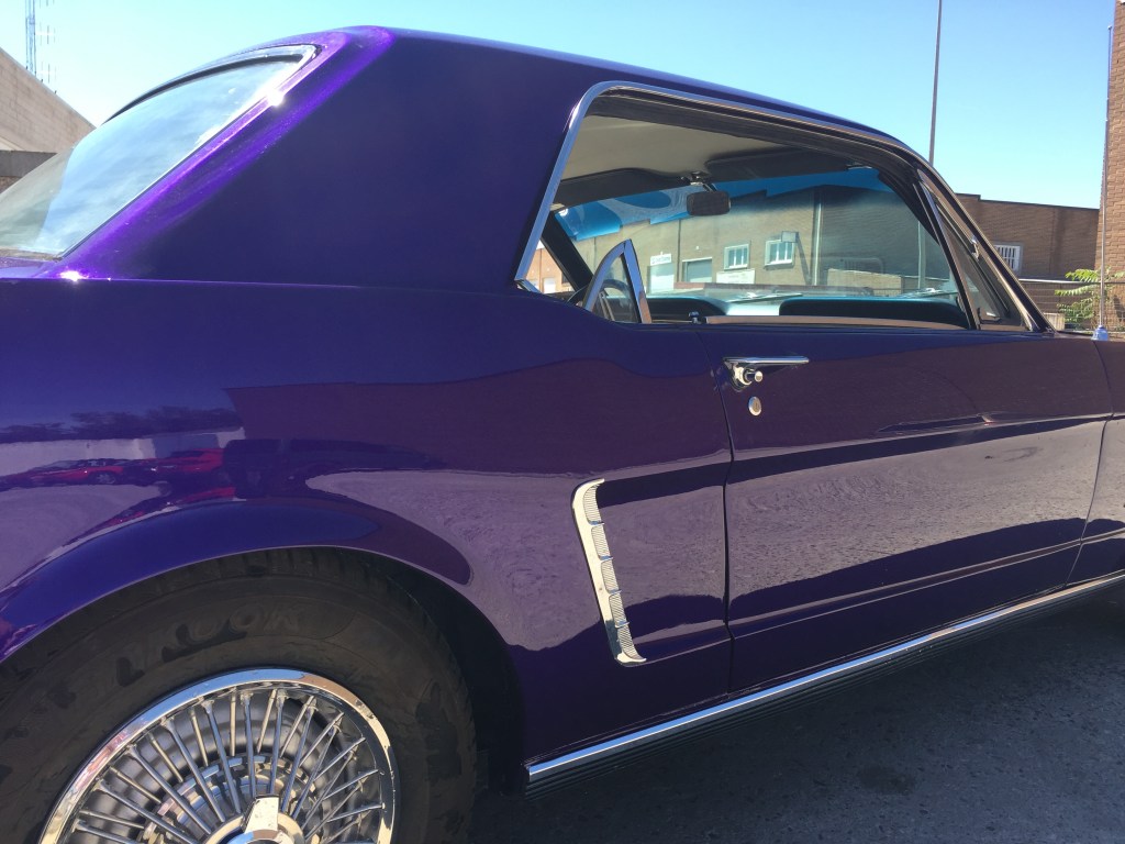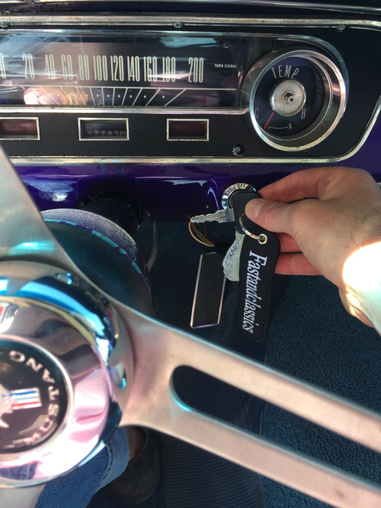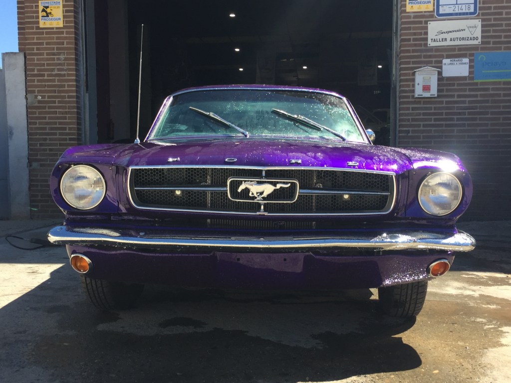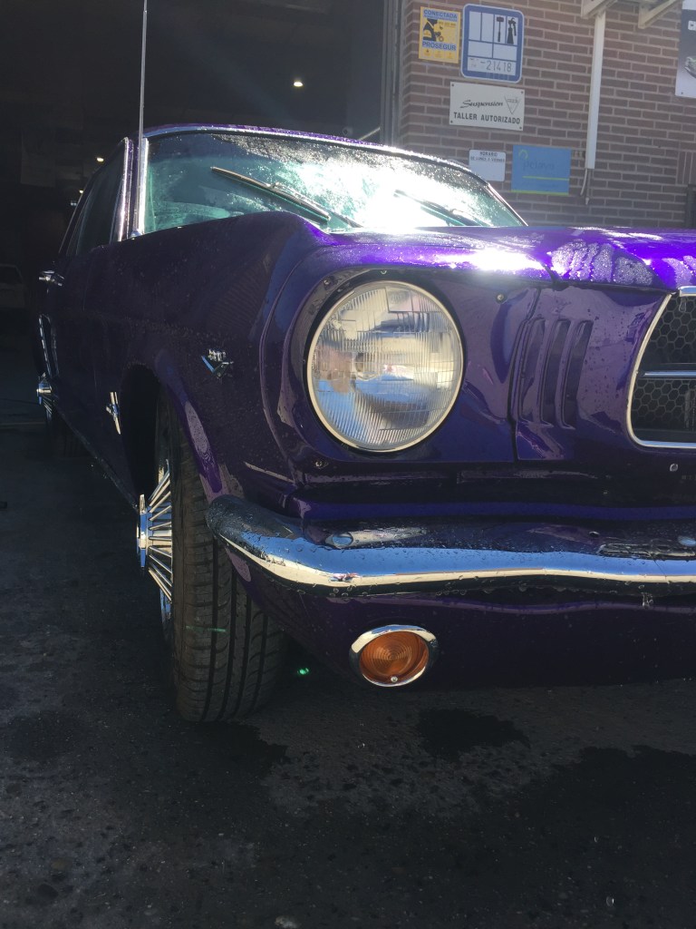 El coche . Un Mustang , para los amantes de los clásicos americanos , un icono , para mi , un monstruo , ruidoso , muy cómodo en las plazas delanteras y pequeñísimo en las traseras , sorprendente para lo largo que es el coche . Cuando me monté atrás , no podía estirar ni un poco las piernas pero cuando te pones al volante en el puesto de conducción …… otra cosas , cómodo , muy cómodo y poderoso , tomas el volante y te sientes como si tomases las riendas de un caballo poderoso que corre , corre , corre .