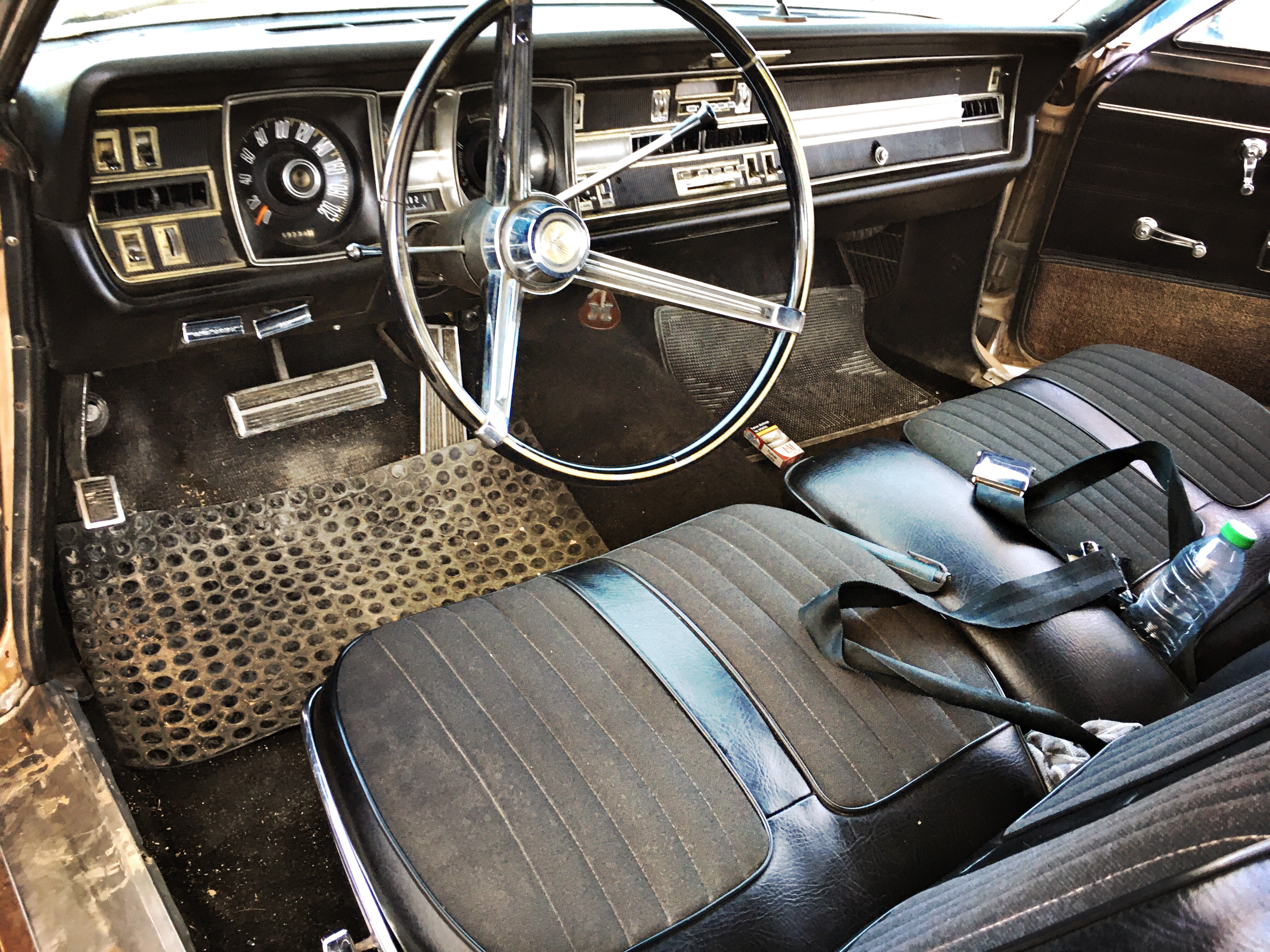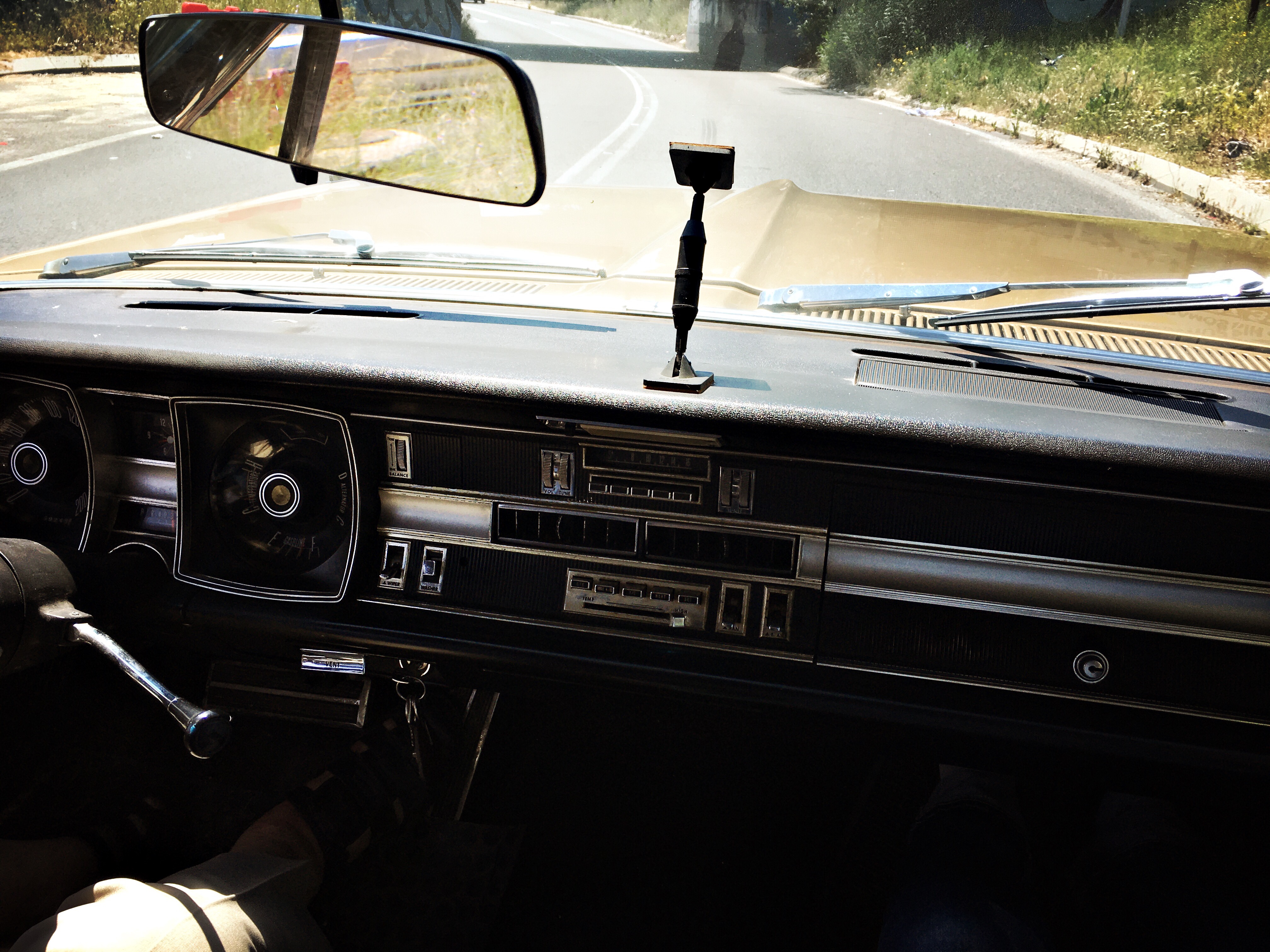 Después de la anécdota de cómo llegó este coche a su garaje , yo , como el pupilo que aprende de su maestro , no paraba de tomar notas en mi cuaderno : que si el coche fue de los primeros en usar frenos de disco , que si el motor V8 de más de seis mil centímetros cúbicos , los casi 6 metros de largo , o de la exclusividad de ser probablemente la única unidad en España en este estado , hacían que cada vez disfrutase más de este coche , solo nos faltaba la música country en la radio y kilómetros de recta ( bueno o el Born in the U.SA. del amigo Bruce , que aunque de los 80 a mi me gusta más )