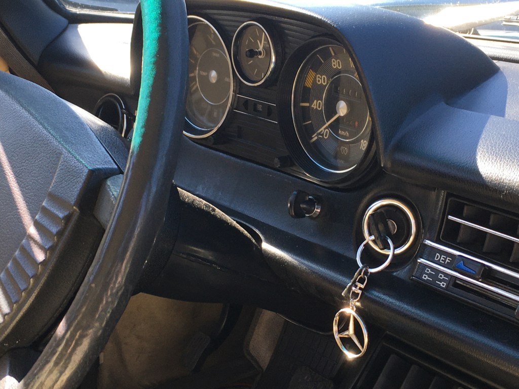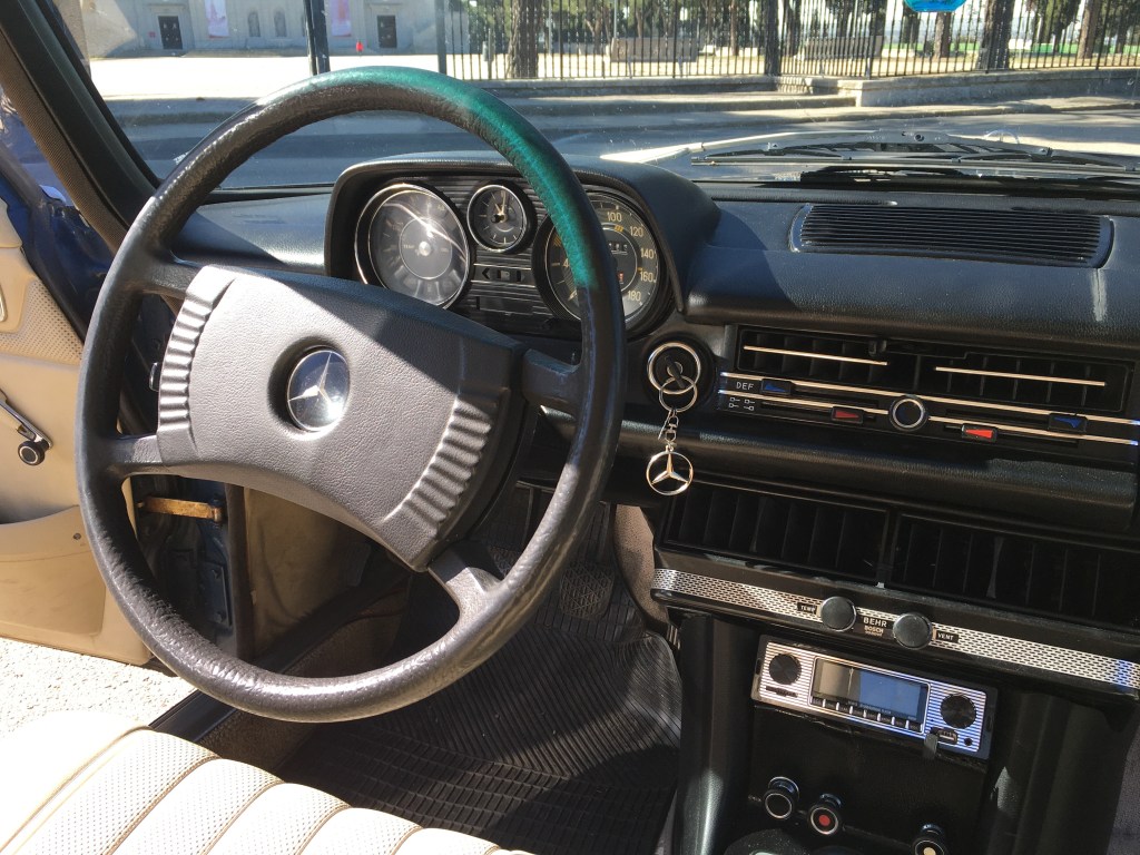 La unidad que hoy mostramos es un elegante w115 240, de tres litros , cinco cilindros y motor diésel del año 1975 pero matriculado en el 77.