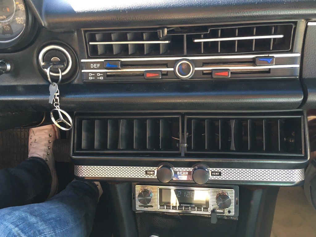 Máquina y propietario conviven desde hace dos años , y después de una pequeña puesta a punto así de cómo adaptarlo al siglo XXI ( el aire acondicionado ) hoy , con su matrícula histórica , su radio moderna estilo vintage , y su navegador ( eso si se quita y pon para no perder la pátina del coche ) es un vehículo perfecto para poder disfruta de él a diario ( aunque ya sabemos cómo somos los propietarios de clásicos que los sacamos lo justo y los mimamos en exceso ) .