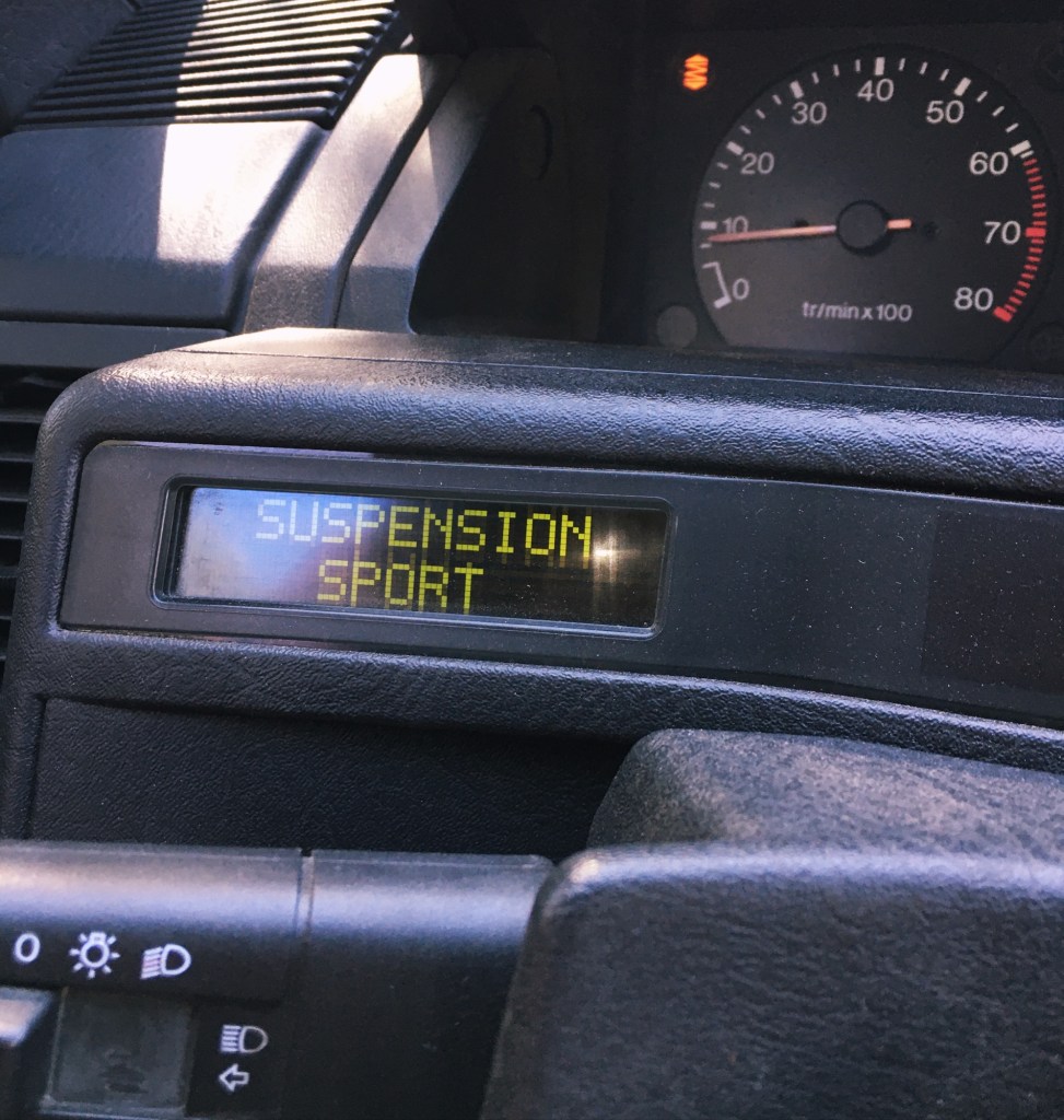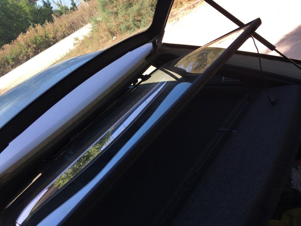 Muy cómodo el puesto de conducción , cómodas las plazas traseras , y pese al alerón trasero y los distintos ángulos , la visibilidad del coche es francamente buena , tacto excelente de la caja de cambios , y una vez familiarizado con el sistema de recuperación de la dirección que pone el volante en el centro , creedme si os digo que es una gozada de coche , llenos de gachets de los 90 como el arranque codificado , la radio escondida , la famosa luna 13 , que separa el habitáculo del coche ofreciendo un mayor aislamiento cuando abres el portón trasero ,