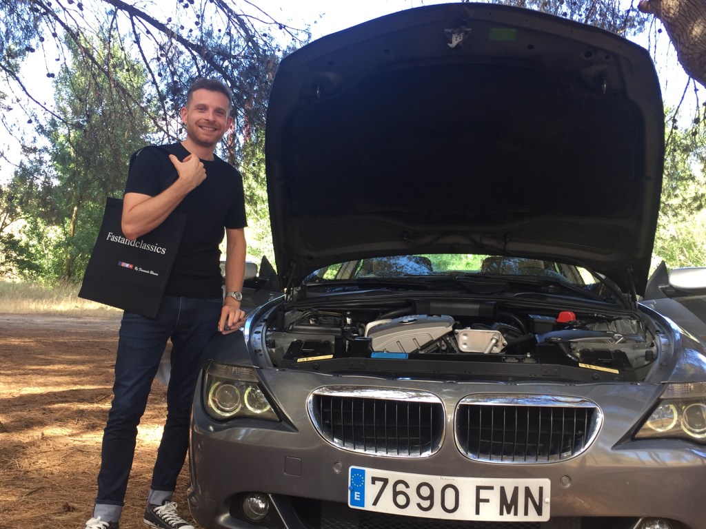 Lo primero que hace una vez cruza el charco es materializar un sueño , y tanto lo deseó que sin tener todavía el Triumph , se hace socio del club , del que puede presumir ser entonces el primer socio del club sin coche , cierto que es la manera más sensata de buscar y pedir consejo , y así fue , gracias al club contactó con quien supo aconsejarle de la unidad que actualmente tiene : un precioso TR3 azul del año 59, que en origen se fabricó de manera artesanal en los talleres de la marca para ir a Estados Unidos y más tarde acabar en Barcelona donde después de una puesta a punto completa ( restauración desde 0) terminó en las manos de su actual dueño desde Junio del 2019 , quien personalmente lo trajo desde la ciudad condal para sorpresa del responsable del taller de restauración ( diez horas tardó en hacer Madrid -Barcelona , cierto es que paró bastante en el camino) .