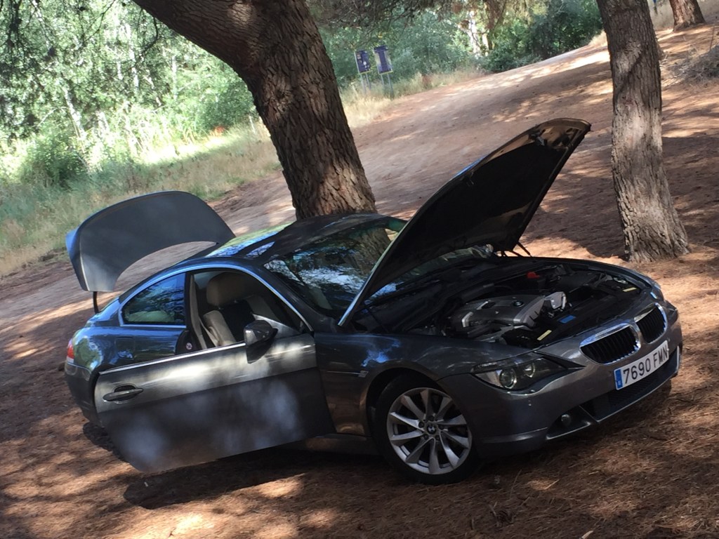 Hasta el soporte del teléfono móvil que está en el parabrisas queda bien , la dualidad de antiguo y nuevo , pista que el coche se usa todo lo que se puede pues esa es la filosofía de su dueño .